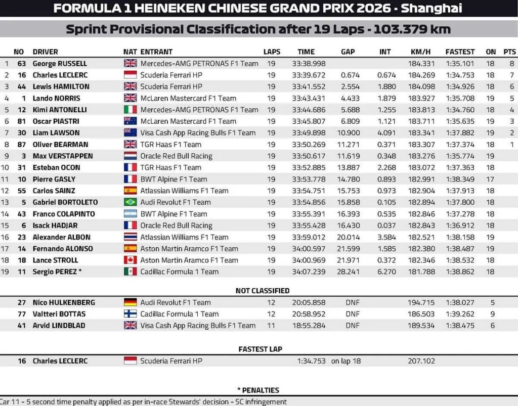 La course sprint du Grand Prix de Chine 2026 a confirmé la grande forme de Mercedes sur le circuit de Shanghai.