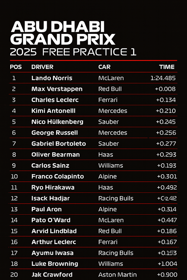 resultats-essais-libres-1-grand-prix-abou-dabi-2025 par F1 NewsFri, 05 Dec 2025 12:07:37 +0100 Partager Commentez via Facebook