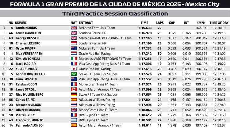 Essais Libres 3 – Grand Prix du Mexique 2025 : Norris reprend la main, Hamilton et Russell sur ses talons