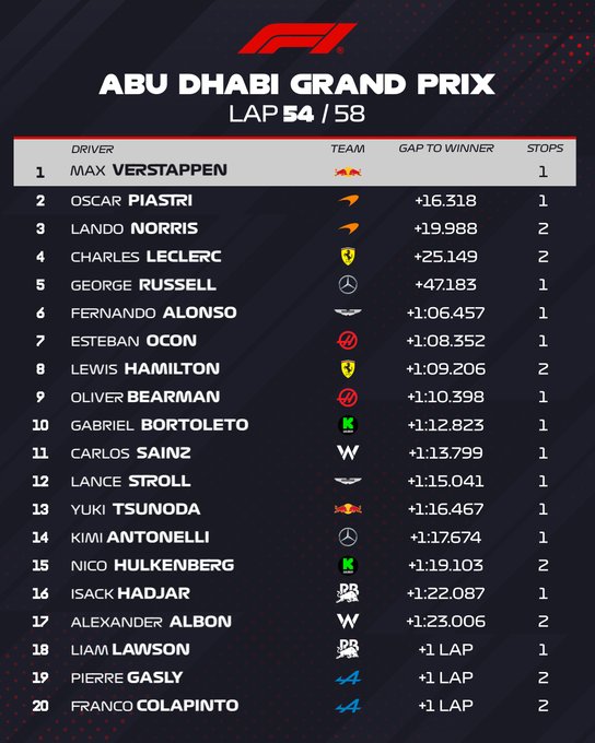 Avec ce résultat, Lando Norris devient champion du monde de Formule 1 pour la première fois de sa carrière.
